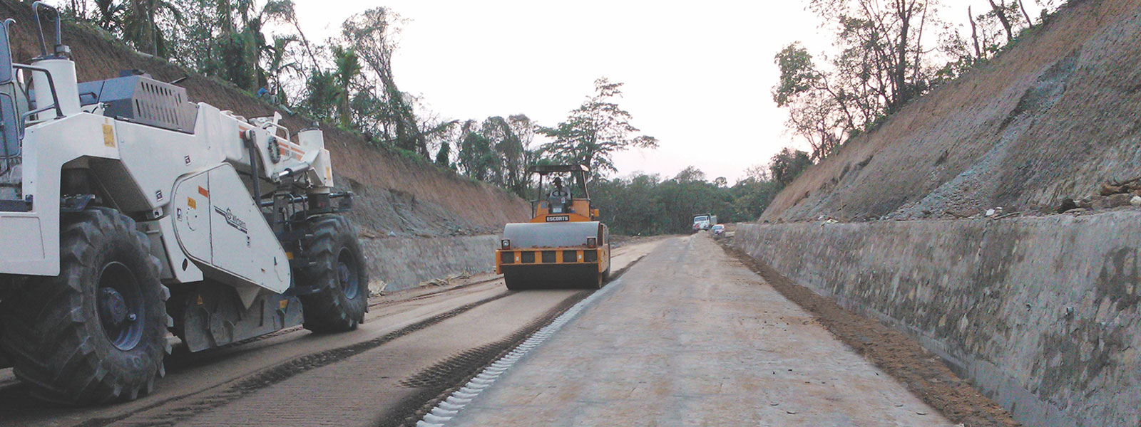 Concrete: 170 kg / m³Task: Rehabilitation of old 2 lane state highway pavement using Shamrock GeoScience Range Composite technology as per specifications and directions of PWD Engineer in Charge.
